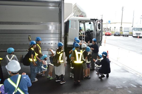 丸山運送、親子で交安体験イベント ドライバーと安全宣言