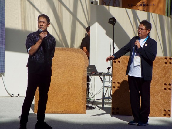 エースジャパン(京都府精華町)の判藤慶太社長は9月30日、大阪・関西万博のフューチャーライフビレッジで行われたパネルディスカッションに参加し、会場へ2千脚提供している未利用間伐材を活用した2人掛けベンチの製作理念、これまでの軌跡、今後の展望について語った。また、同日午後には京都府下の小中学生と一緒に劇やクイズ形式で来場者にプロジェクトの内容をアピールした。(中川美咲)