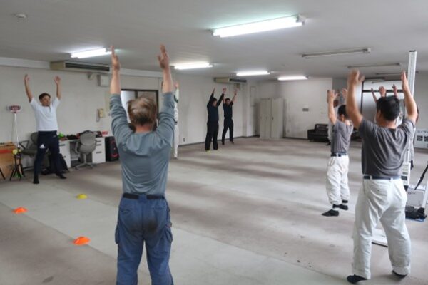 三好ロジテック(三好寿良社長、大阪市大正区)は10月16日、スポーツジムの運営などを手掛けるBLUE BACKS(ブルーバックス、中岡祐一社長、住之江区)の協力で、50歳以上の社員を対象とした体力測定を行った。今春、60歳以上を対象に同様の取り組みを実施。加齢による身体的な変化に関心を持ってもらうため、今回は対象年齢の幅を広げた。ラジオ体操の効果を高めるためのレクチャーを受けるなど、すぐに実践できる健康増進の方法も教わった。(黒須晃)