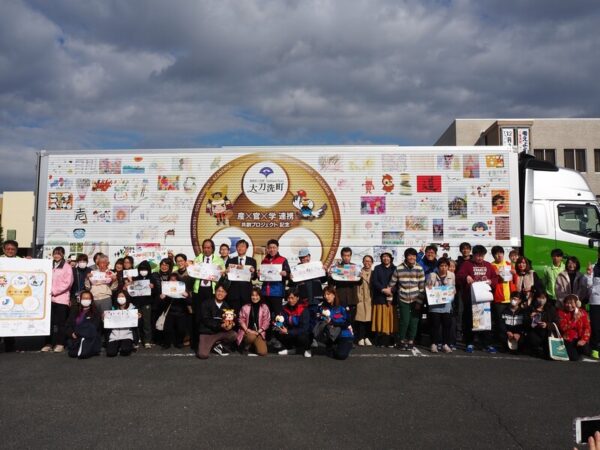 PJは、障がい者アートを活用した共生社会の実現や、産官学連携を土台に多様な人材が活躍できる事業の創出を目指すもの。同町や近隣自治体の福祉施設の利用者ら181人が絵画や書を応募し、日経大商学科1年生がデザインとレイアウトを担当。ツルクがトラックに施工した。また、ツルクでは学生の現地実習を受け入れ、物流業界や地域の課題を伝えた。
