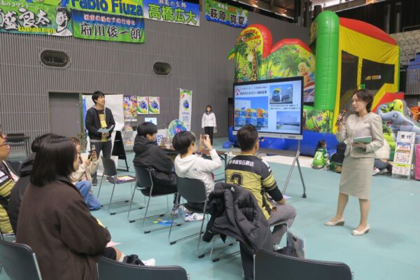 まるだい運輸倉庫(秋元美里社長、神奈川県小田原市)は2025年12月6日、湘南ベルマーレフットサルクラブ(佐藤伸也社長、同)の選手やサポーター、一般市民らとの対話イベントを小田原市で開催した。物流、スポーツ、地域をつなぐ全3回のイベントシリーズの最終回で、秋元社長も参加してグループディスカッションなどが行われ、「自分を大切にすること」の重要性を探った。