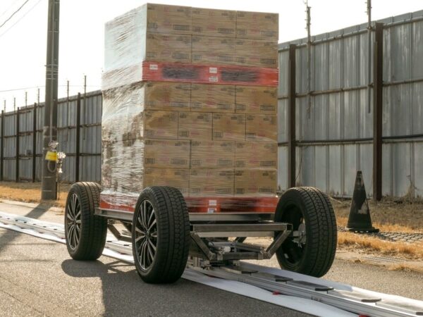 千葉県と成田国際空港(NAA、藤井直樹社長、千葉県成田市)は18日、自動物流道路の実装に向けた技術的課題の実証実験を進めているCuebus(キューバス、大久保勝広社長、東京都台東区)のリニアモーター式搬送機器を公開した。実験は屋外で行われ、重量660㌔の日用雑貨品を積載した11パレットを運ぶ搬送機器が110㍍の搬送レーンを往復。キューバスの担当者は「実証実験では安定した性能を発揮している」とし、実装に向けた技術開発に自信を示した。