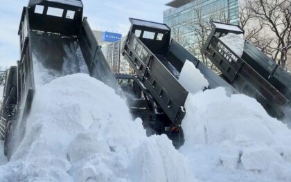 「第76回さっぽろ雪まつり」が4~11日、札幌市の3会場で開かれ、雪像などに使われる雪の輸送にダンプ事業者が協力した。輸送期間中は市内の雪が少なく、遠方の倶知安町などからも雪を集めた。