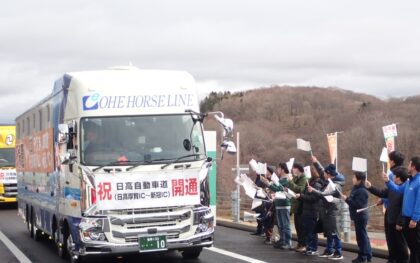 日高自動車道の日高厚賀インターチェンジ(IC、北海道日高町)―新冠IC(新冠町)を結ぶ9.1㌔が2月28日、開通した。室蘭開発建設部によると、苫小牧市―新ひだか町の所要時間は夏期で7分、冬期は6分、それぞれ短縮される見…