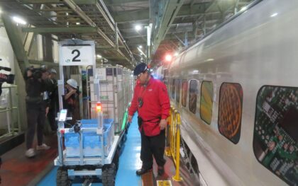 JR東日本は23日、荷物専用新幹線の平日定期運行を盛岡発・東京着のルートで開始した。トラックから下ろした荷物を盛岡新幹線車両センター(盛岡市)でAGV(無人搬送車)を活用して積み込み、東京新幹線車両センター(東京都北区…